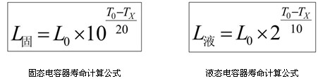 6.固態電解質沒有揮發性,在使用中不易損失,因此使用壽命比液態電容器高出很多。液態鋁電容器遵循溫度每下降 10℃,壽命提高 2 倍的原則;固態鋁電容器則遵循溫度每下降20℃,壽命提高10倍的原則(如下表所示) 。